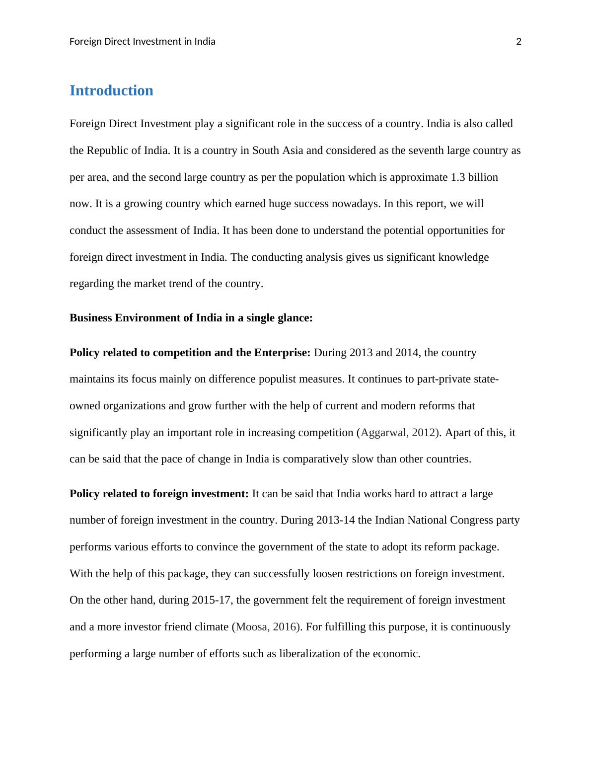 Running Head: Foreign Direct Investment in India