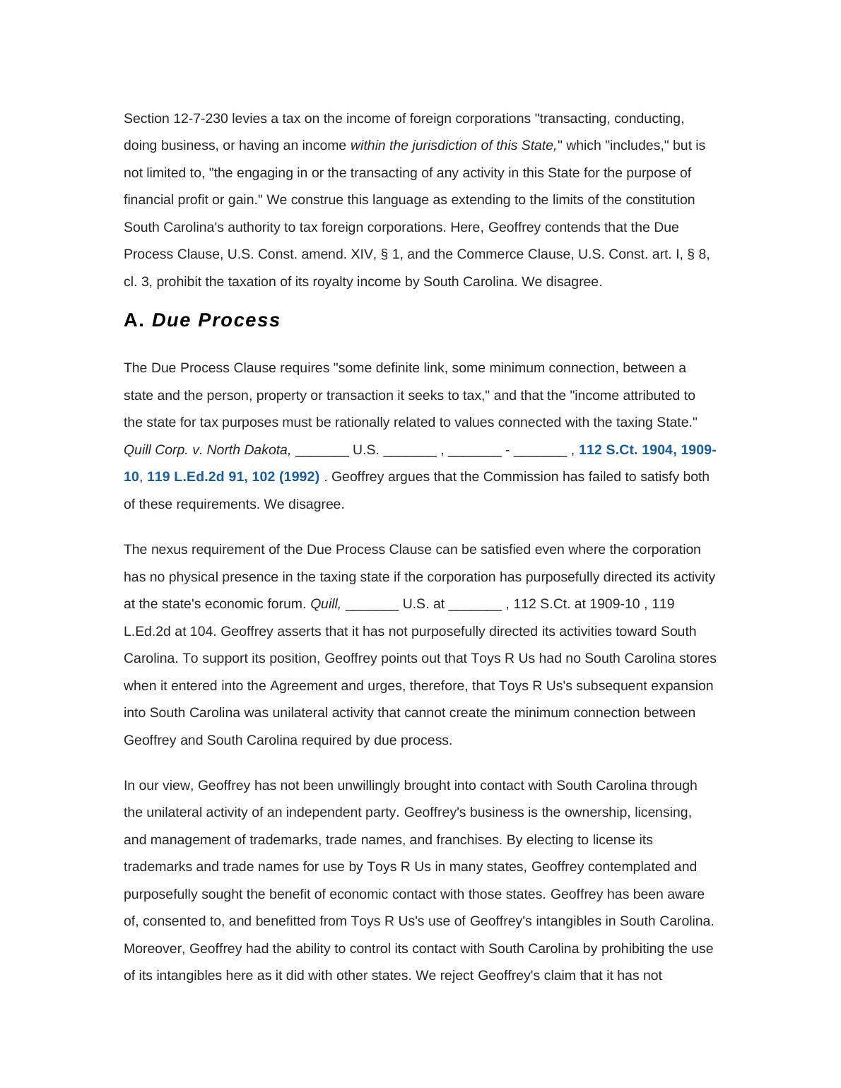 South Carolina's authority to tax foreign corporations. Here, Geoffrey contends that the Due
