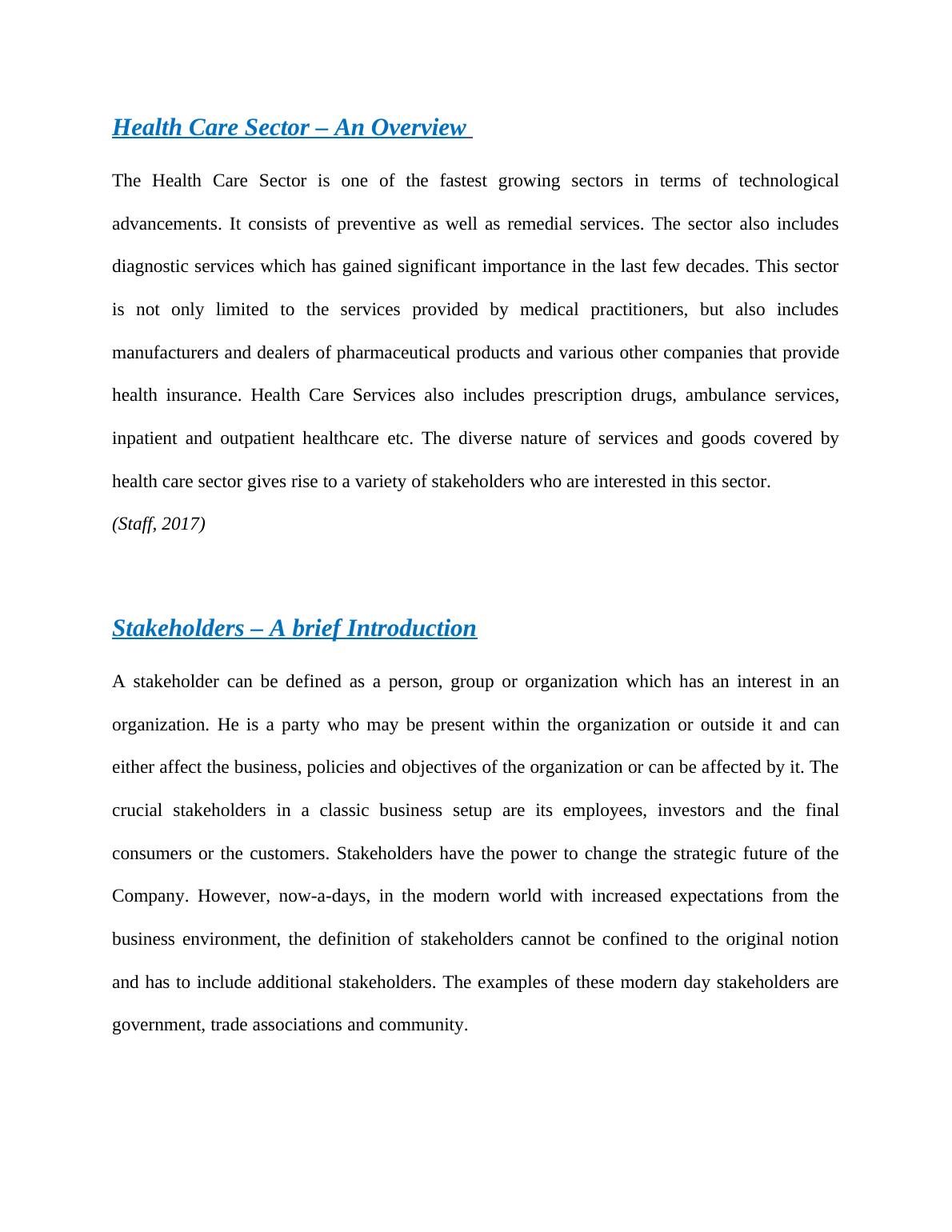 health care sector gives rise to a variety of stakeholders who are interested in this sector.