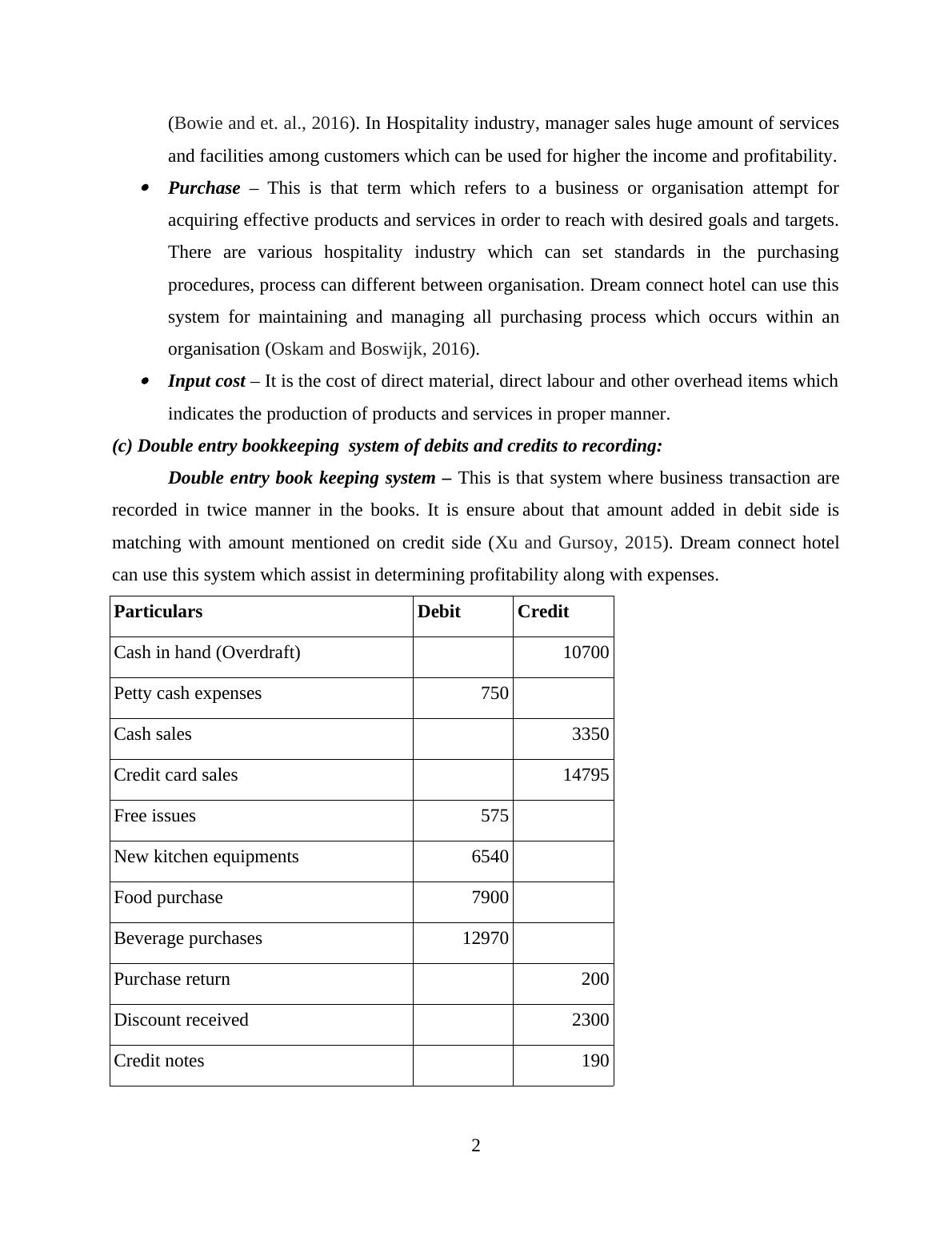 matching with amount mentioned on credit side (Xu and Gursoy, 2015). Dream connect hotel