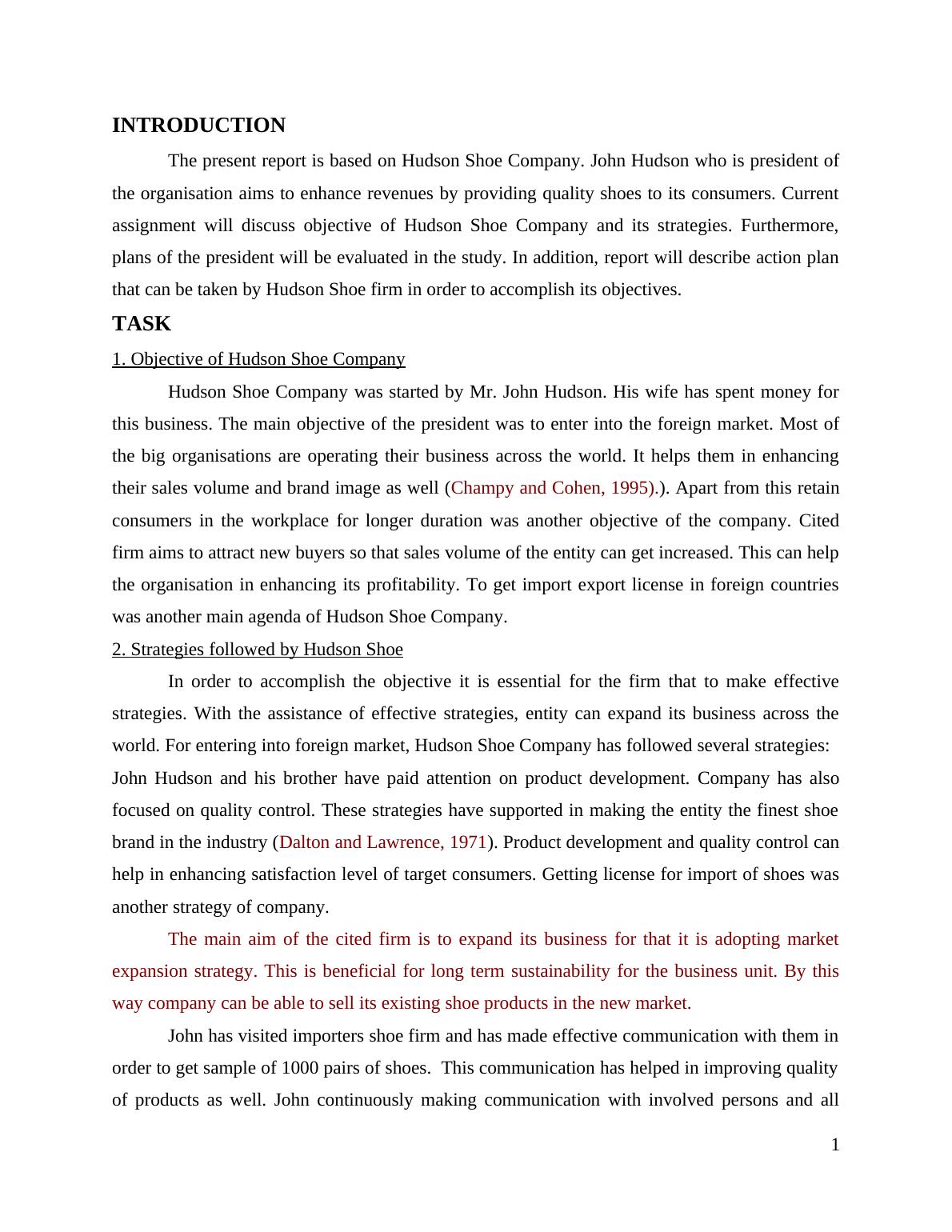 assignment will discuss objective of Hudson Shoe Company and its strategies. Furthermore,