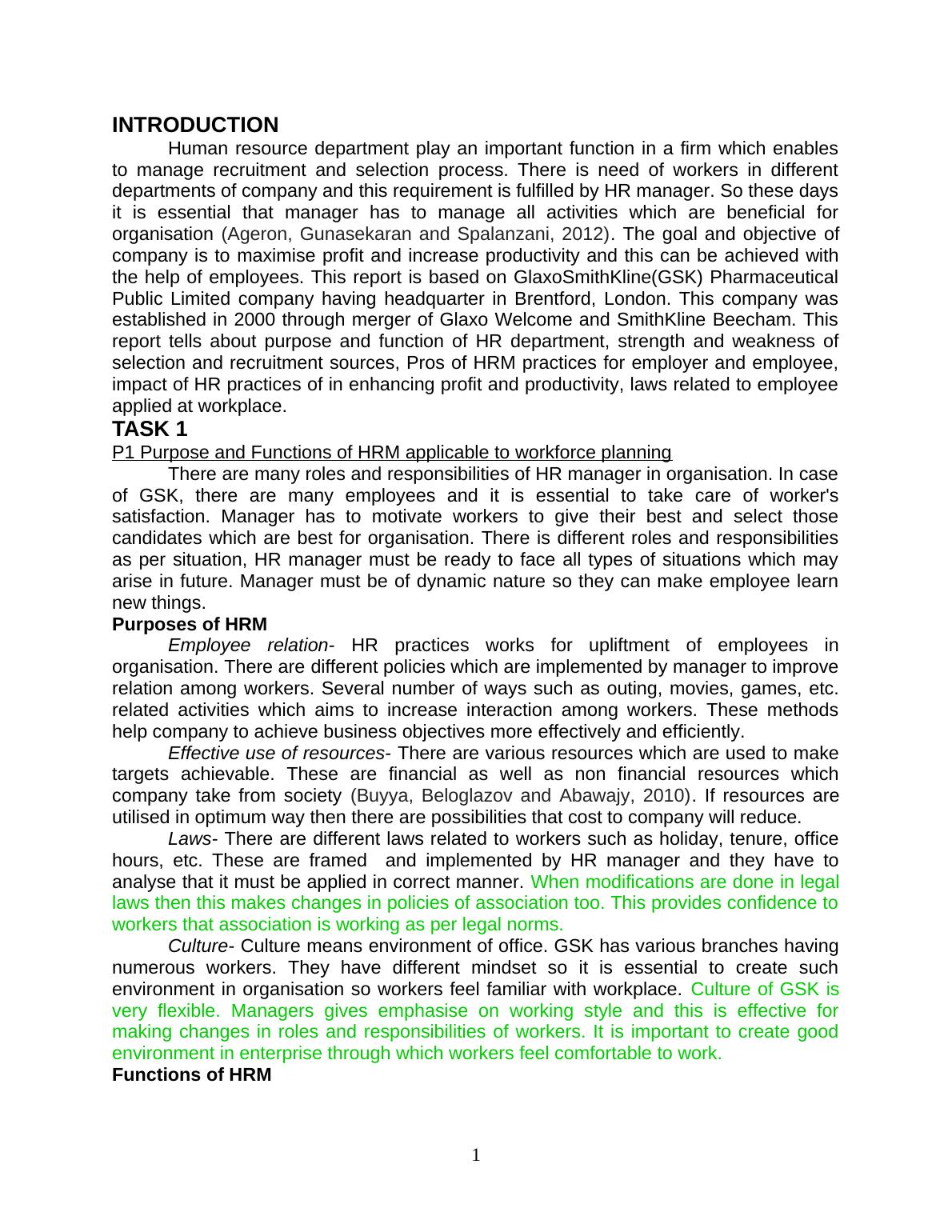 This report examines the Human Resource Management (HRM) practices of GlaxoSmithKline (GSK), focusing on workforce planning, recruitment, selection, and employee relations. It begins with an introduction to HRM's purpose and functions, particularly in workforce planning, followed by an analysis of the strengths and weaknesses of internal and external sources of recruitment. The report then explores the benefits of HRM practices for both employers and employees, assessing their effectiveness in enhancing profit and productivity. It also covers the importance of employee relations and the elements of employment legislation. The report further discusses the application of specific HRM practices, including awards, motivation, and training, and evaluates their impact on employee relations and business operations. The report uses examples from GSK and includes a critical evaluation of the various approaches, practices, and their implications on the company's performance and employee satisfaction. The report concludes with a summary of the key findings and recommendations for optimizing HRM strategies within the context of a pharmaceutical company.