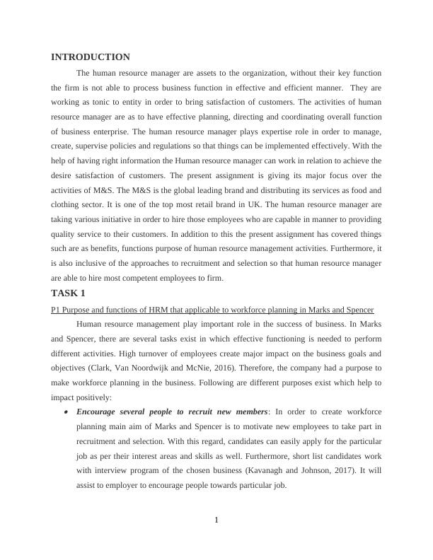 P1 Purpose and functions of HRM that applicable to workforce planning in Marks and Spencer