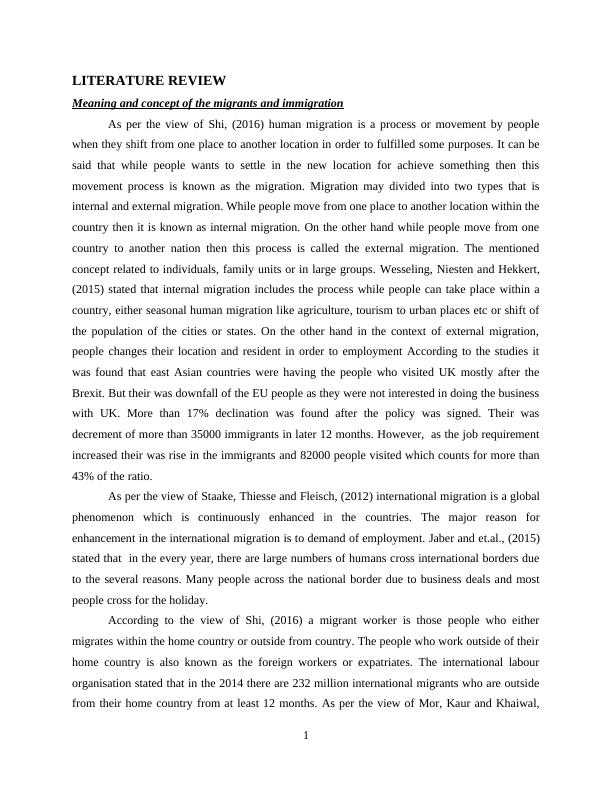 According to the view of Shi, (2016) a migrant worker is those people who either