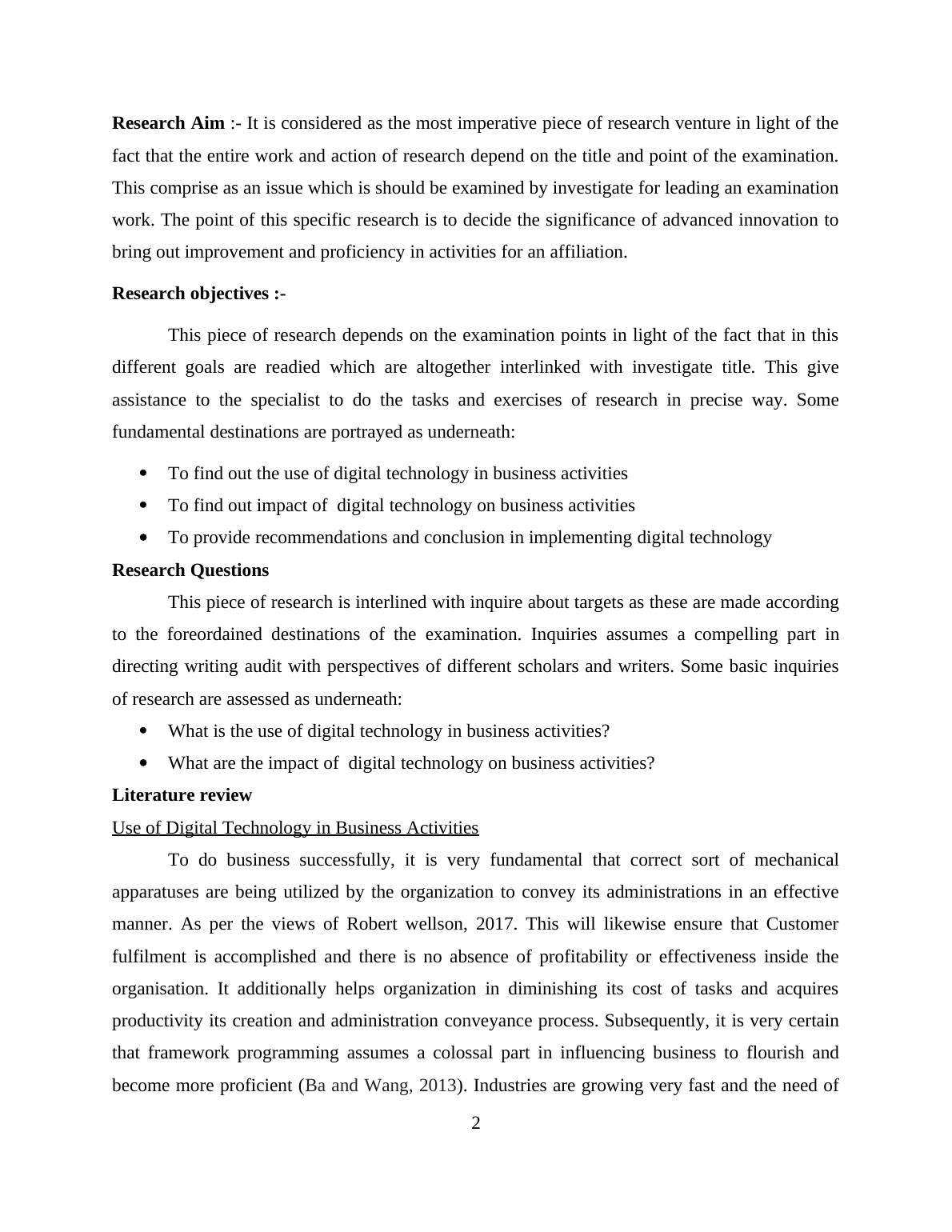 To find out impact of digital technology on business activities