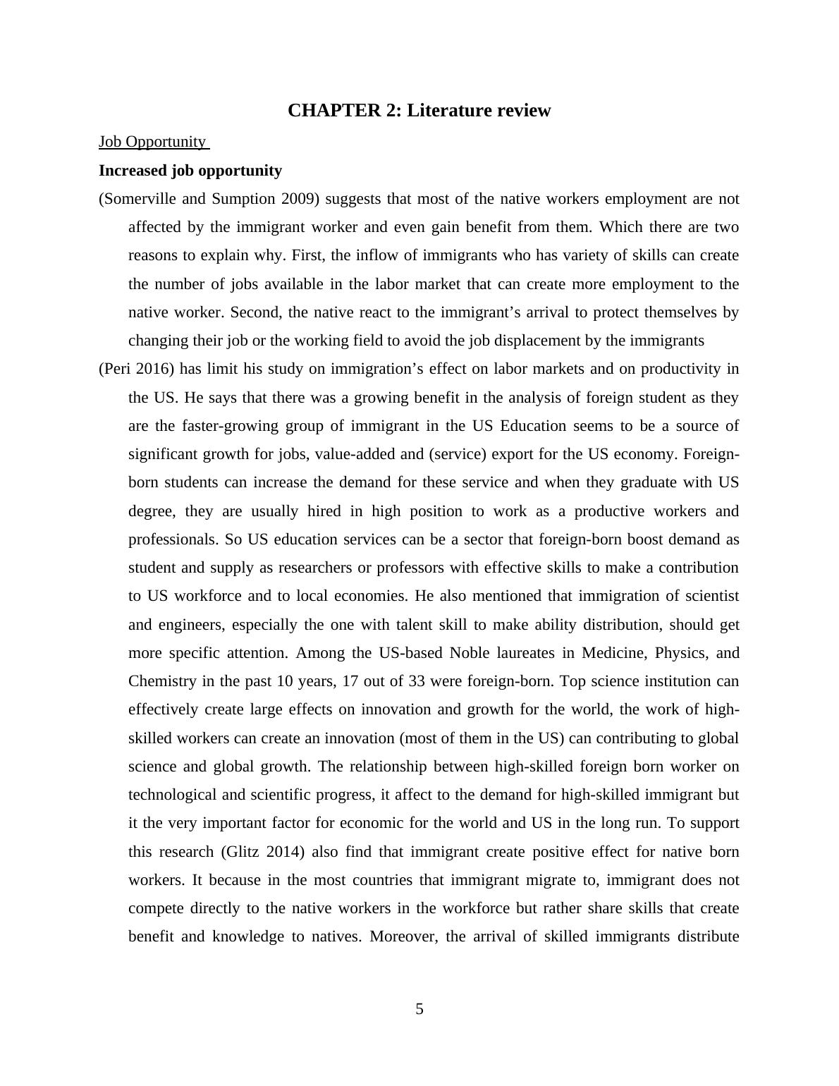 employment. They also estimate that foreign-born workers has relationship with reduction in