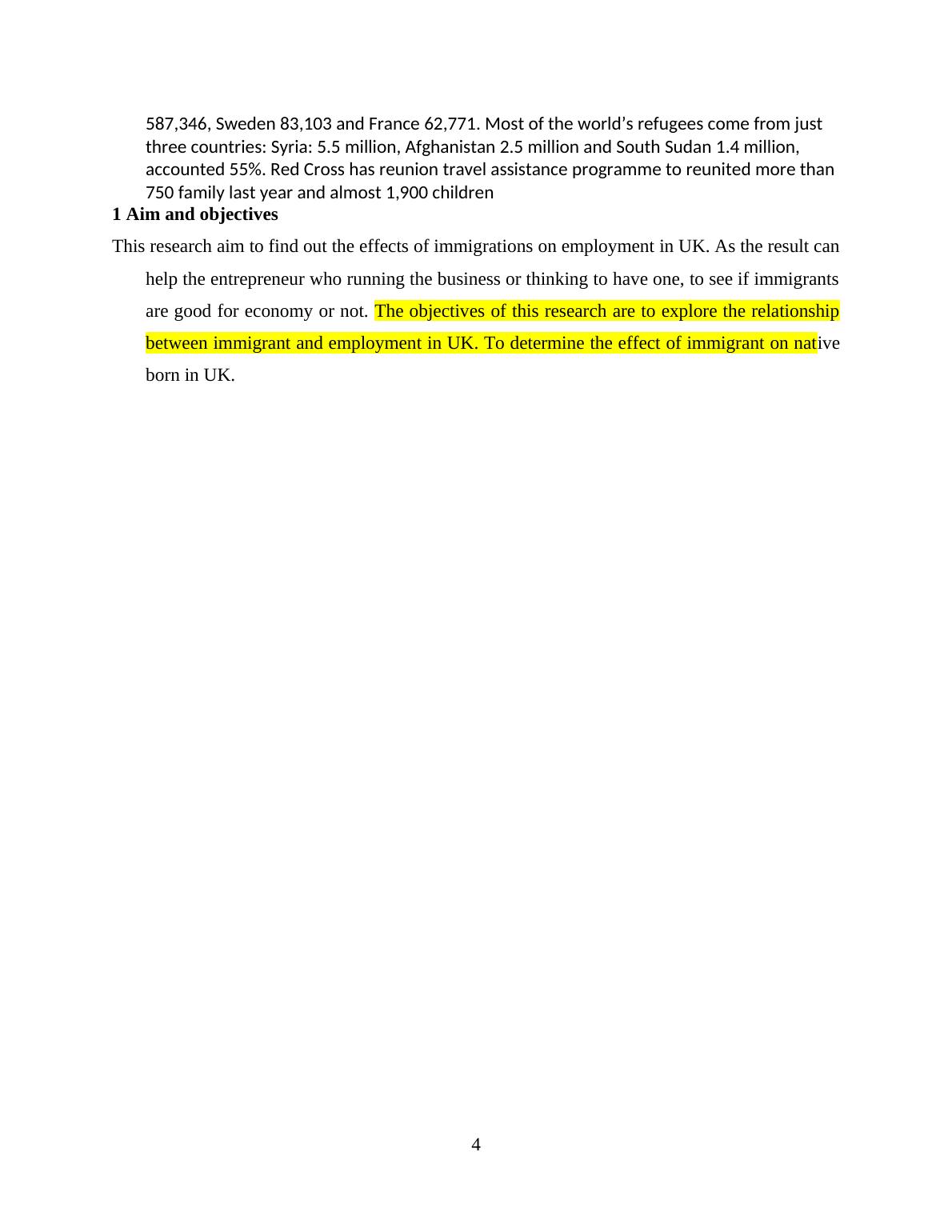 research aim to find out the effects of immigrations on employment in UK. As the result can help