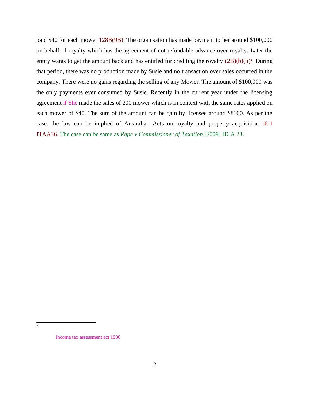 the proper judgement regarding income generated by her s6-1 ITAA36. The common law royalty