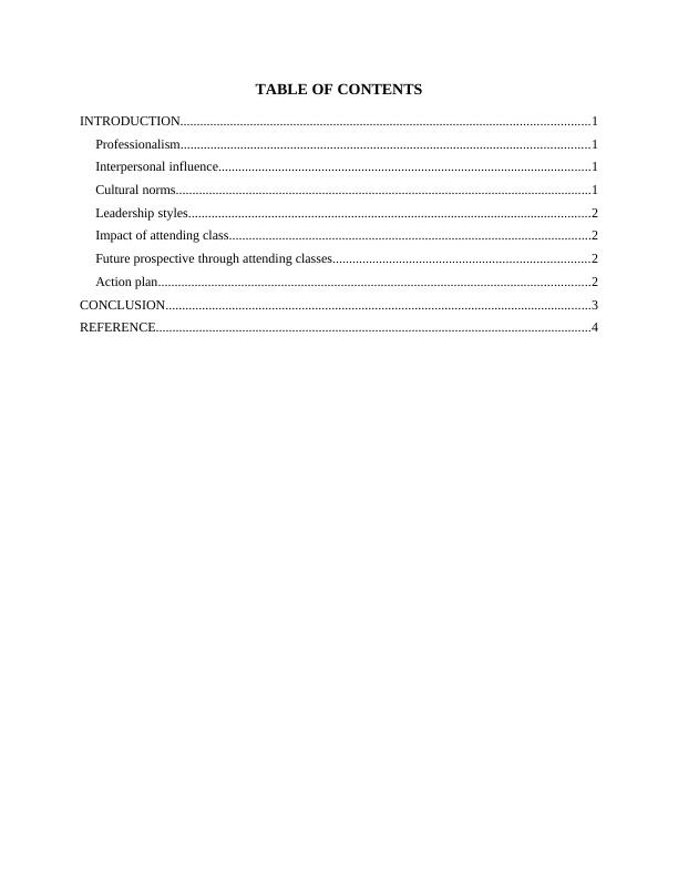 This report is a reflection statement on culture and professionalism, focusing on the impact of attending classes in a graduate program at Adara Group of Australia. The report explores the student's personal and professional development, detailing improvements in areas such as professionalism, interpersonal influence, cultural norms, and leadership styles. It highlights the positive changes in communication, problem-solving, and teamwork, along with the development of an action plan for continued skill enhancement. The student reflects on how attending classes enhanced their understanding of cultural norms, leadership styles, and team building, ultimately leading to a more positive and effective working environment for consultancy services. The report concludes with an emphasis on the importance of these skills for future professional success and the ability to handle situations effectively.