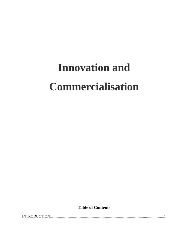 main purpose of this report is to provide the importance of innovation and commercialisation in
