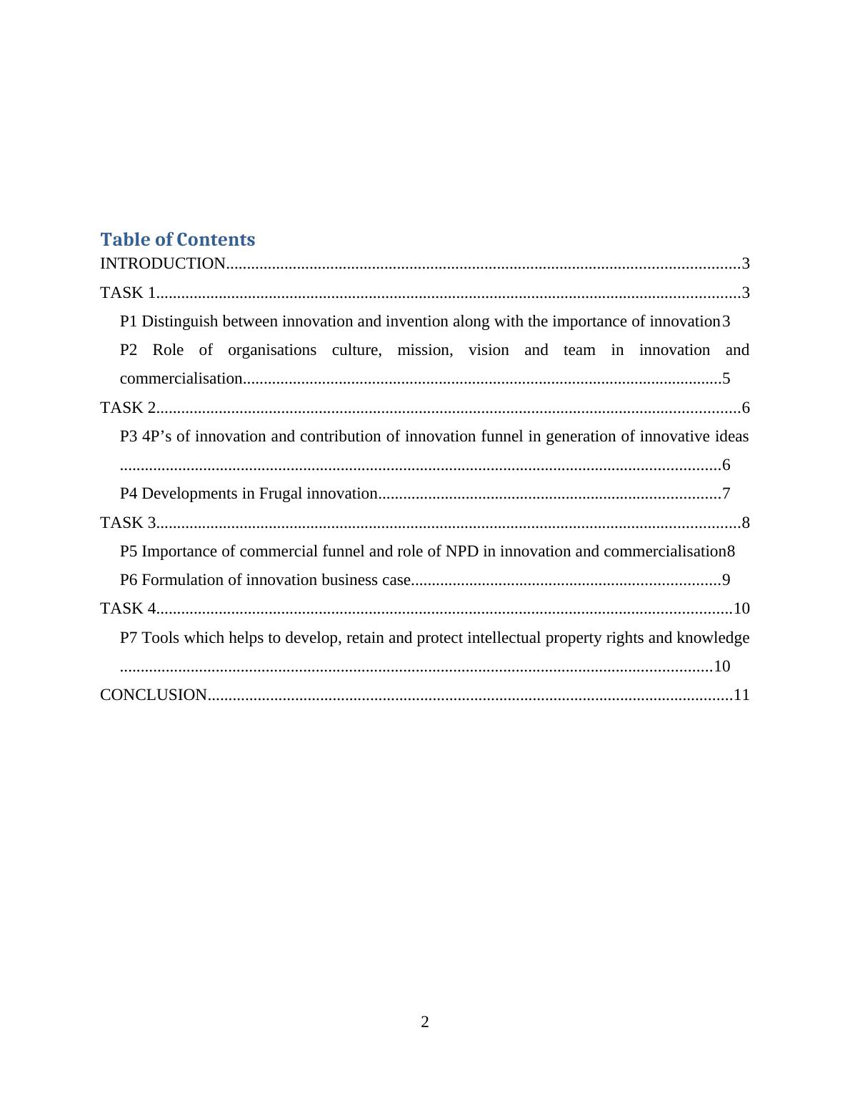 team, 4P’s of innovation and Concept of Frugal innovation. Also, importance associated with