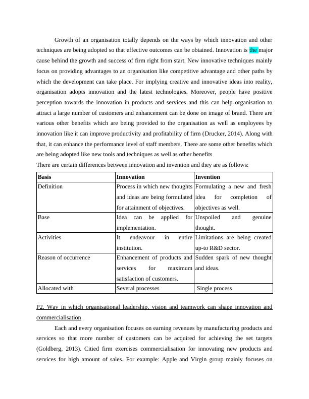 P1. Innovation and its significance to organisations in comparison to invention