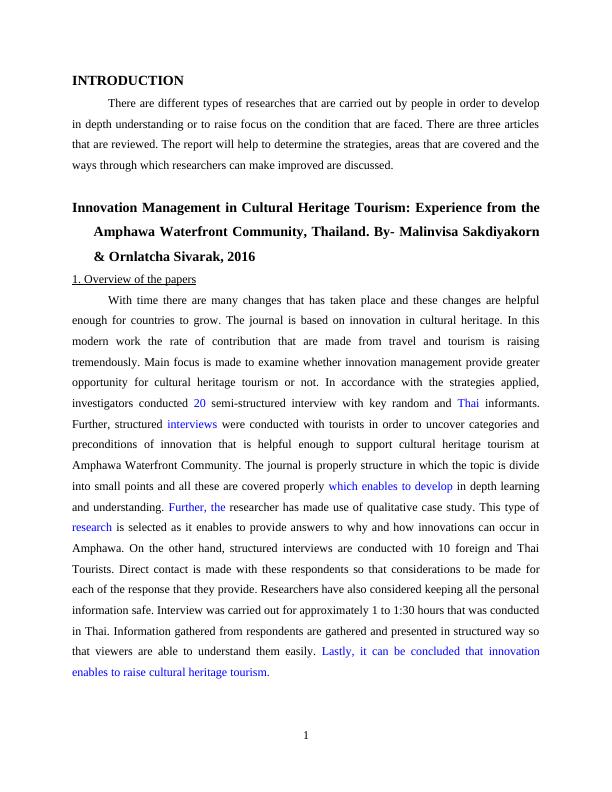 Sakdiyakorn, M. and Sivarak, O., 2016. Innovation management in cultural heritage tourism: