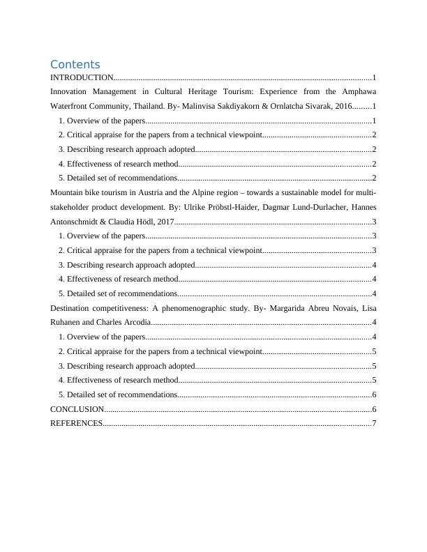The analysis covers three significant papers that explore various aspects of tourism management. The first paper by Sakdiyakorn and Sivarak examines an integrated management approach to cultural heritage and event-based tourism using a case study from Thailand. It highlights how innovation can enhance competitiveness, particularly for small-scale operators in the industry. The second article delves into mountain bike tourism development in Austria, proposing a sustainable multi-stakeholder model that balances economic growth with environmental protection and community involvement. Lastly, Novais et al.'s paper uses phenomenography to identify strategic dimensions of destination competitiveness within the tourism sector, offering insights for long-term competitive advantage. Collectively, these papers provide comprehensive strategies for innovation management in cultural heritage tourism, sustainable mountain bike tourism development, and improving destination competitiveness.