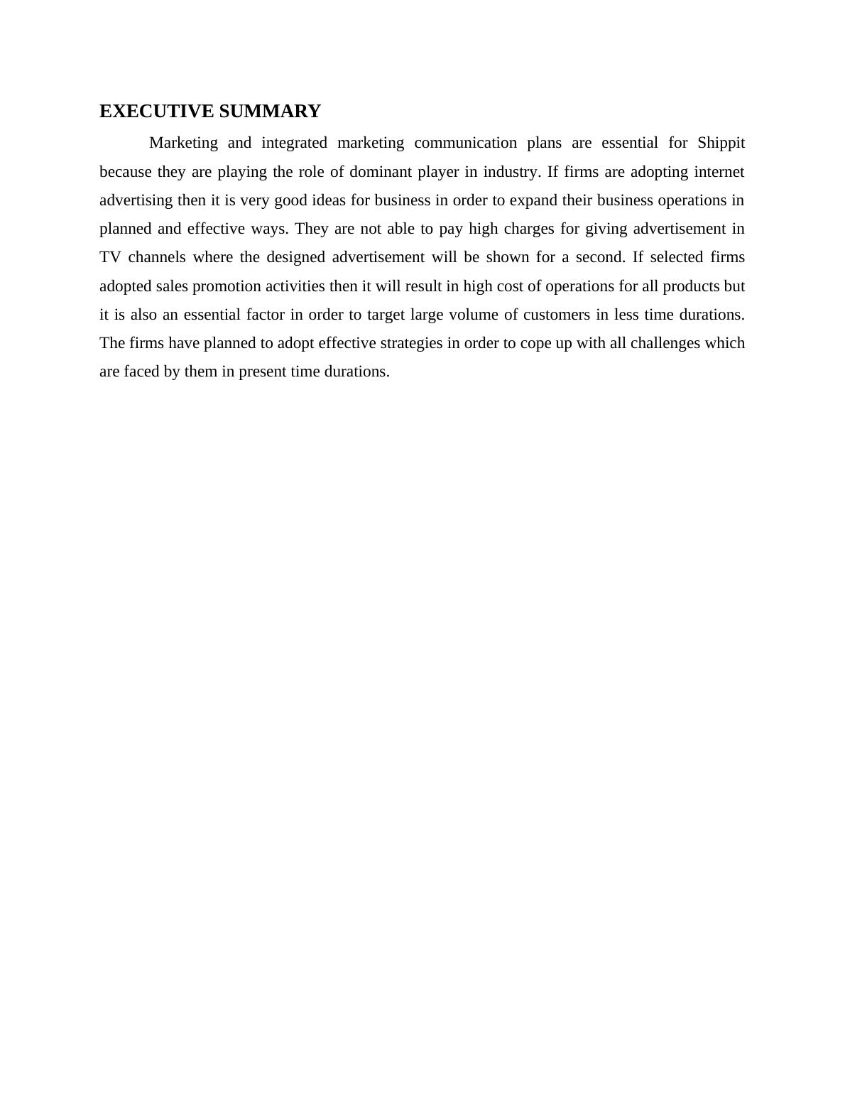 This report provides an executive summary of Shippit's integrated marketing plan, focusing on the logistics industry. It explores the company's strategies for creating brand awareness, particularly in the context of their expansion into the USA. The report details Shippit's communication objectives, including creating awareness, imparting knowledge about their services, and promoting their website. It also examines the company's target market segmentation, creative ideas for attracting customers, and the importance of online marketing for growth. The report highlights the significance of providing value-added services, such as timely and reliable delivery, to gain customer loyalty. The analysis covers various aspects, including advertising, sales promotion, and the use of technology to enhance customer experience and achieve business objectives. The report emphasizes the importance of consistent messaging and website promotion in building a strong brand image and achieving market success.