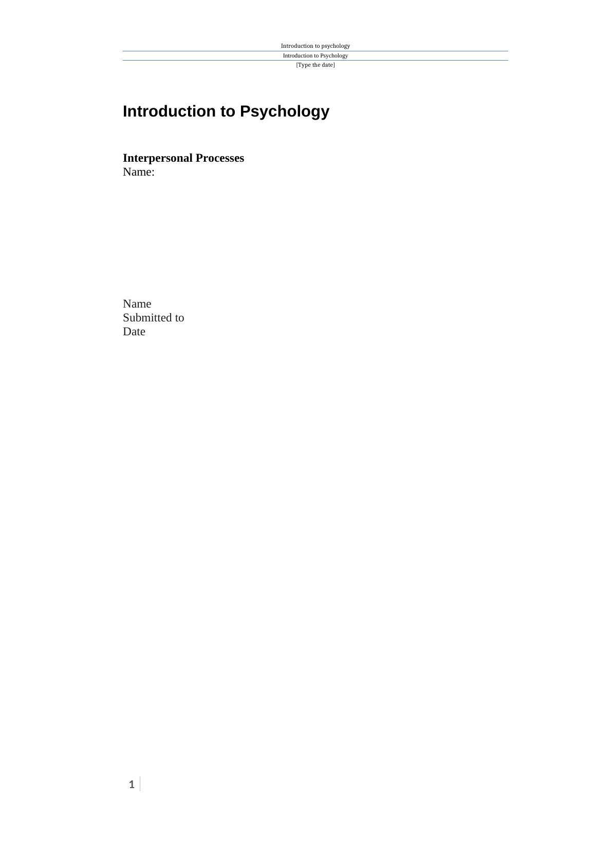 Introduction to Psychology