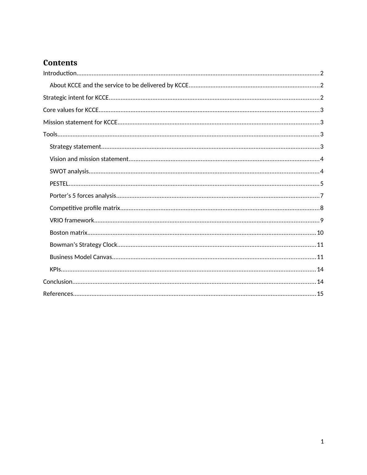 Strategic intent for KCCE.............................................................................................................................2