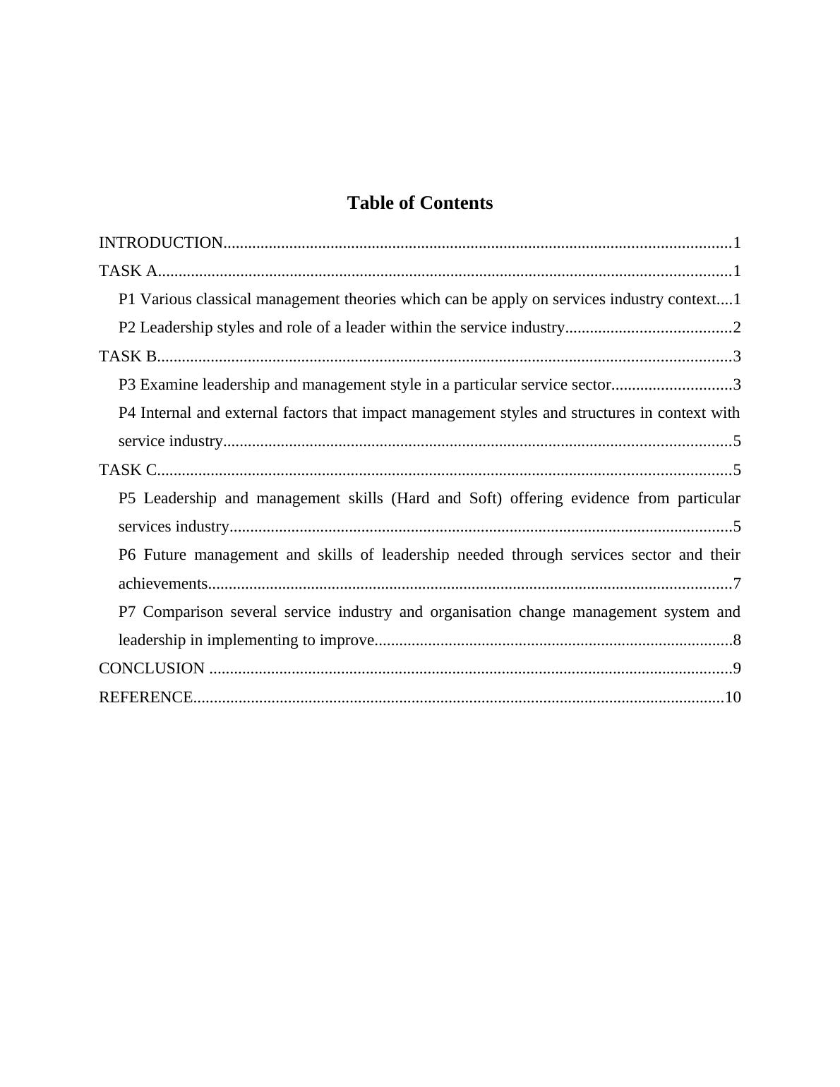P2 Leadership styles and role of a leader within the service industry........................................2