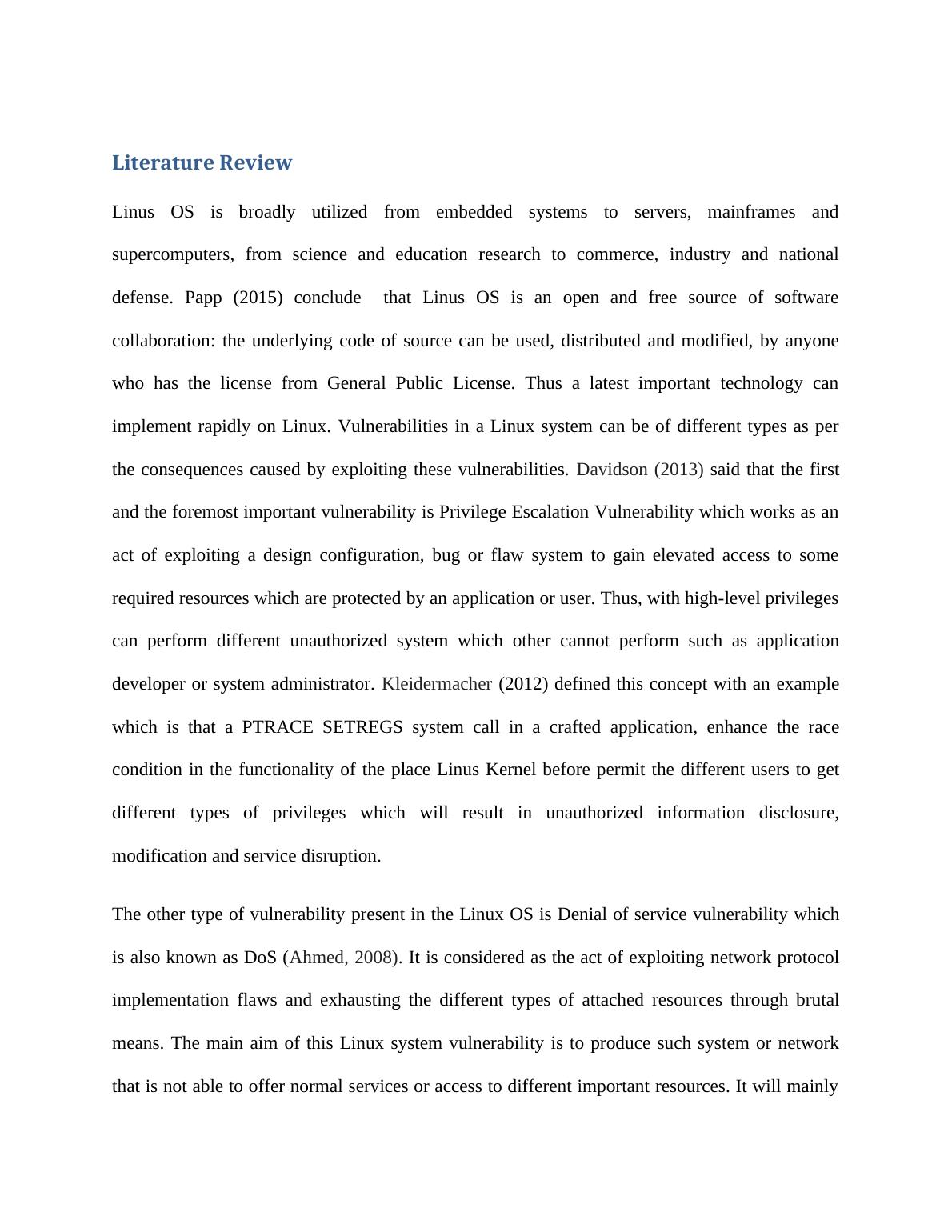 Linux OS Vulnerabilities Literature Review