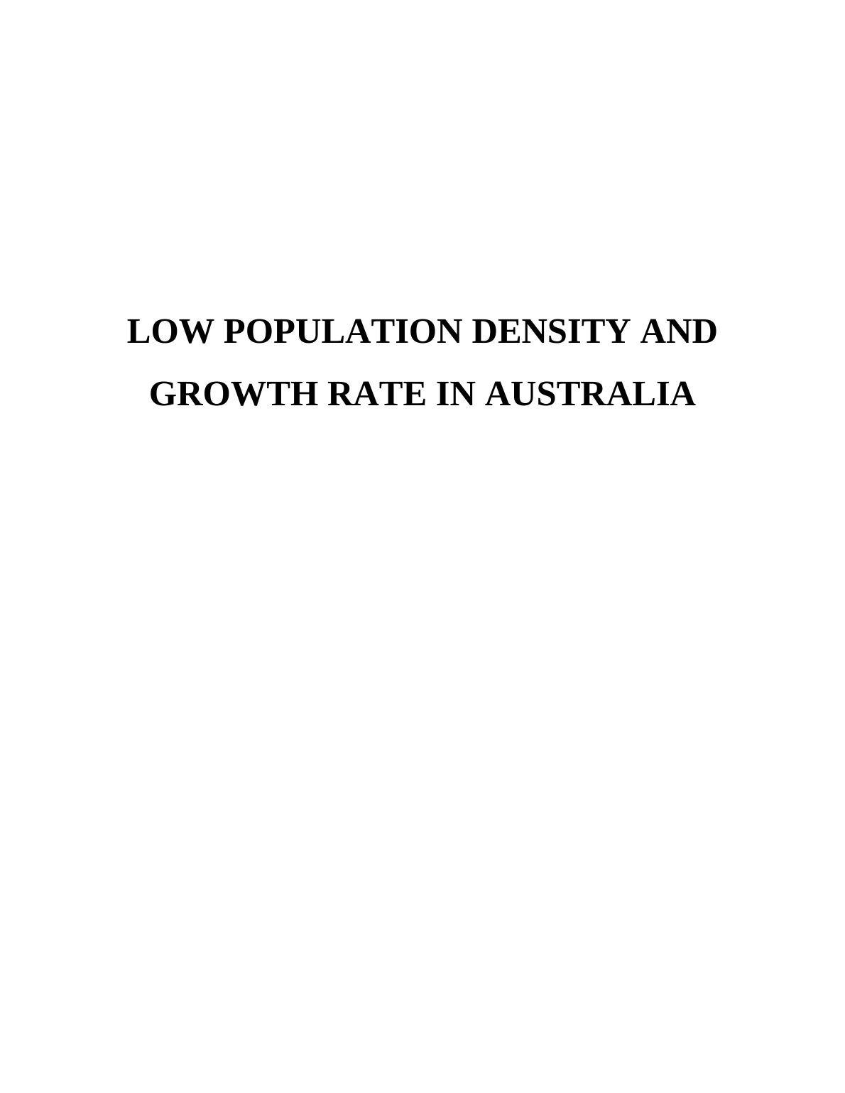 Comprehensive Report: Low Population Density and Growth in Australia