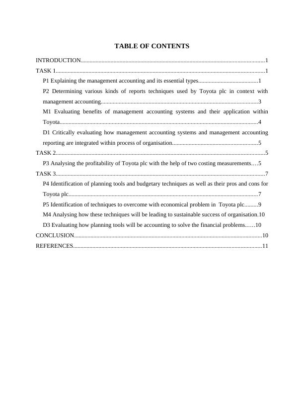 P5 Identification of techniques to overcome with economical problem in Toyota plc.........9