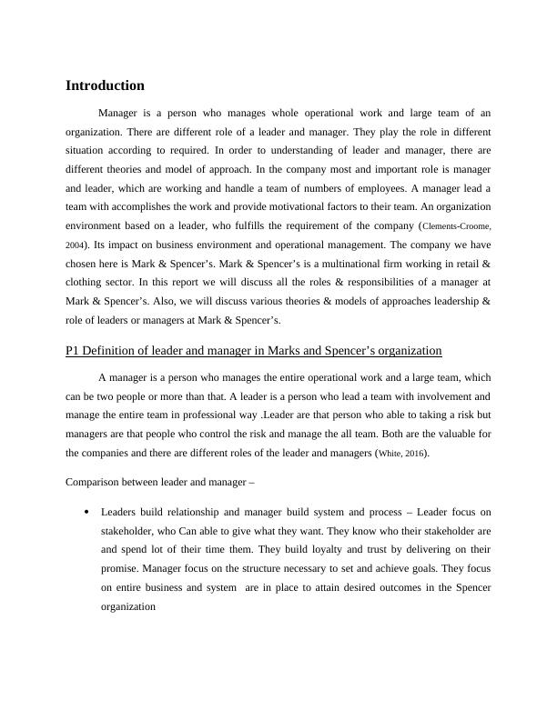 P1 Definition of leader and manager in Marks and Spencer’s organization