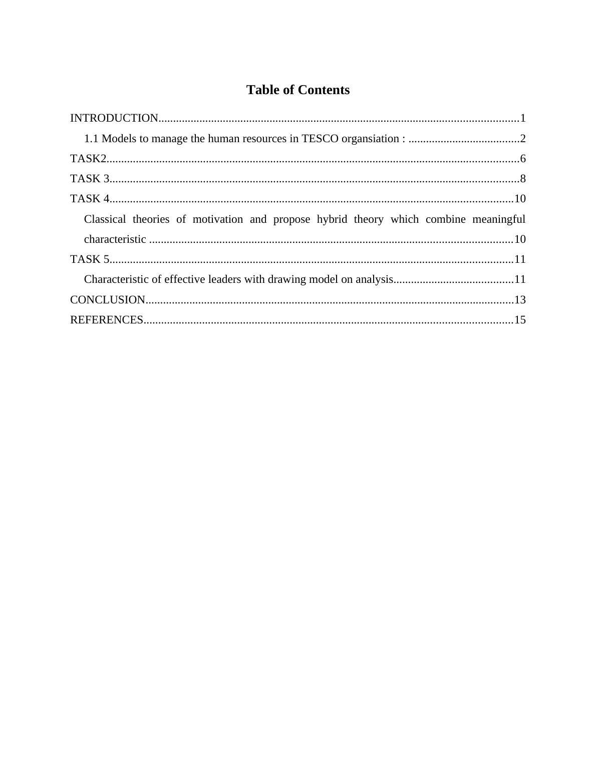 1.1 Models to manage the human resources in TESCO organsiation : ......................................2