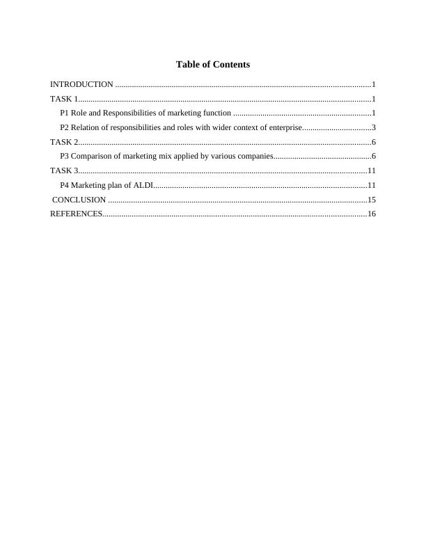 P1 Role and Responsibilities of marketing function ..................................................................1