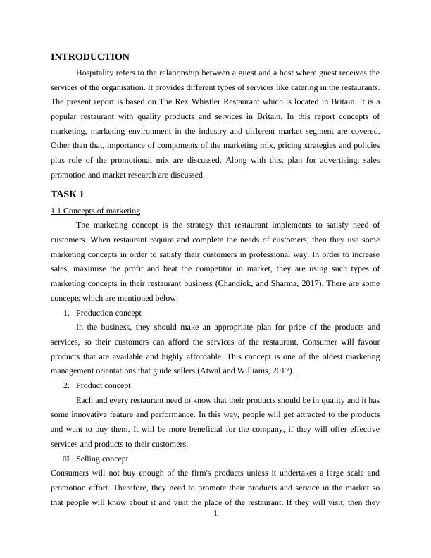 popular restaurant with quality products and services in Britain. In this report concepts of