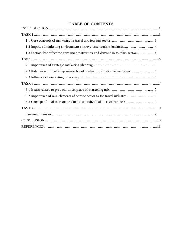 1.1 Core concepts of marketing in travel and tourism sector.................................................1
