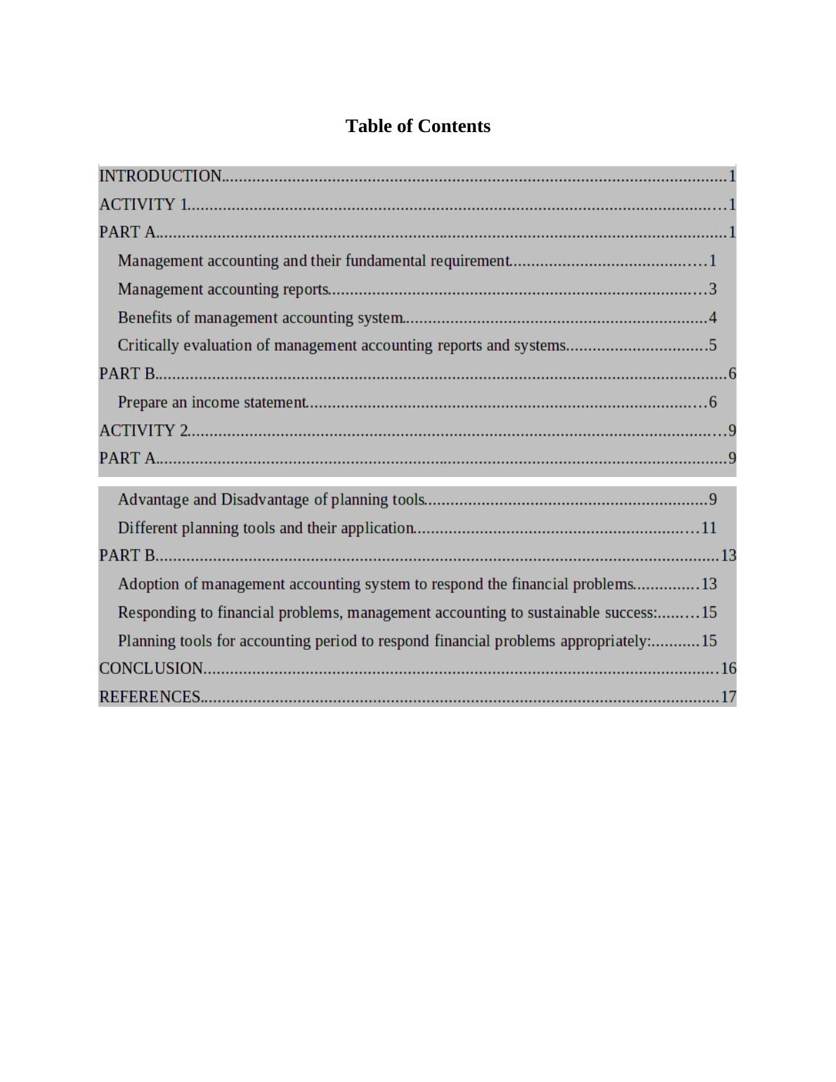 The management accounting system as well as reports related with the organizational