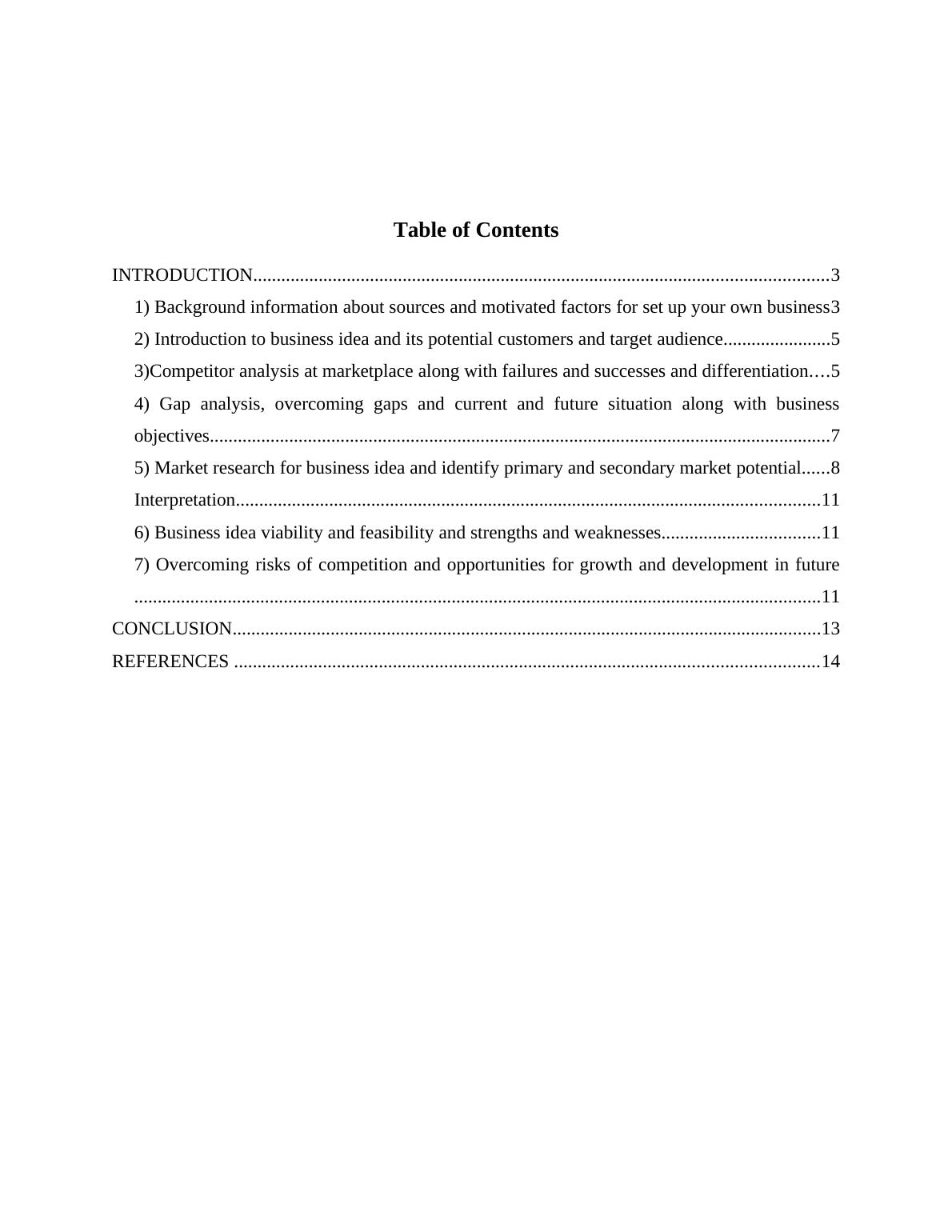 6) Business idea viability and feasibility and strengths and weaknesses..................................11