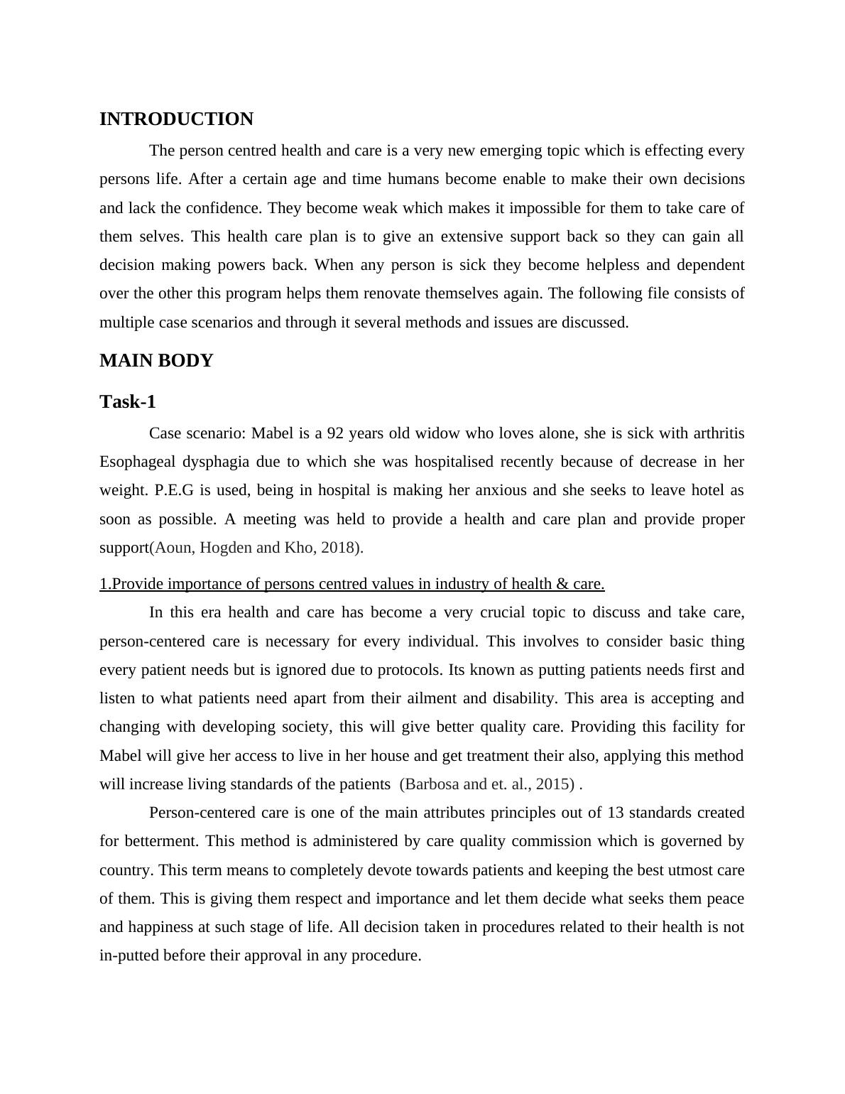 Barbosa, A. and et. al., 2015. Effects of person-centered care approaches to dementia care on