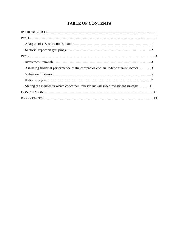 Assessing financial performance of the companies chosen under different sectors .............3