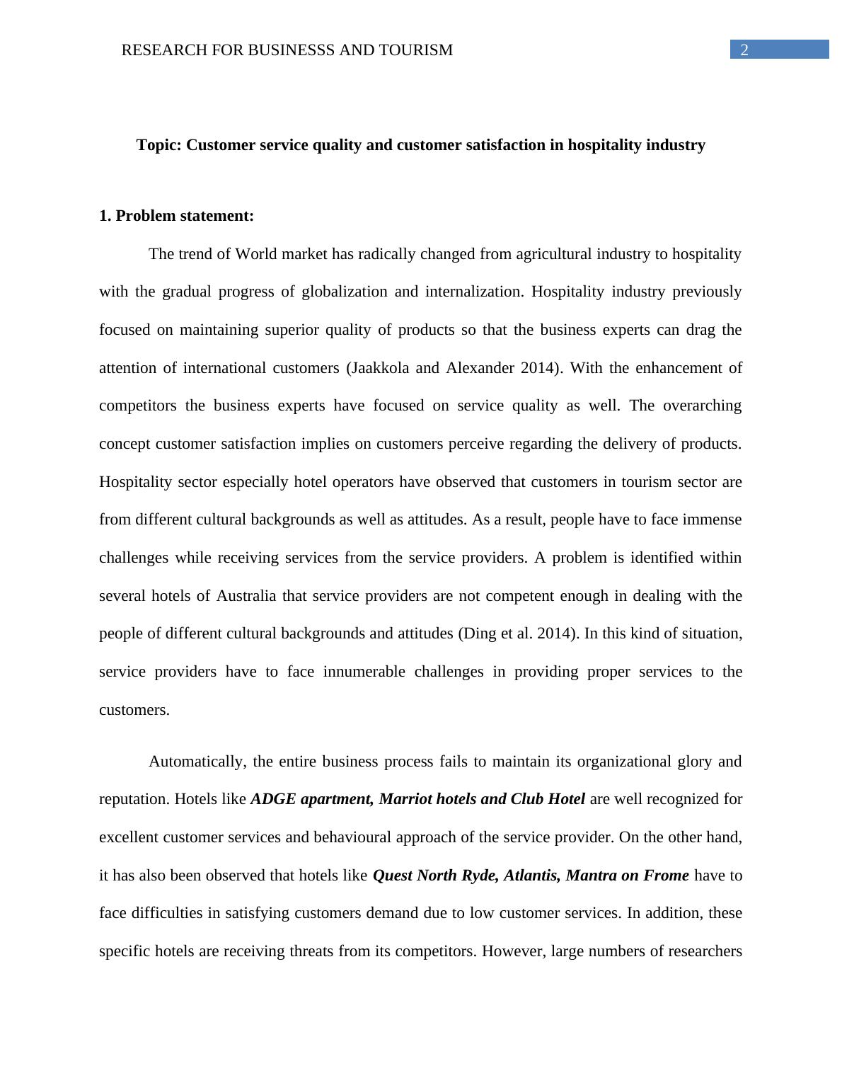 Topic: Customer service quality and customer satisfaction in hospitality industry