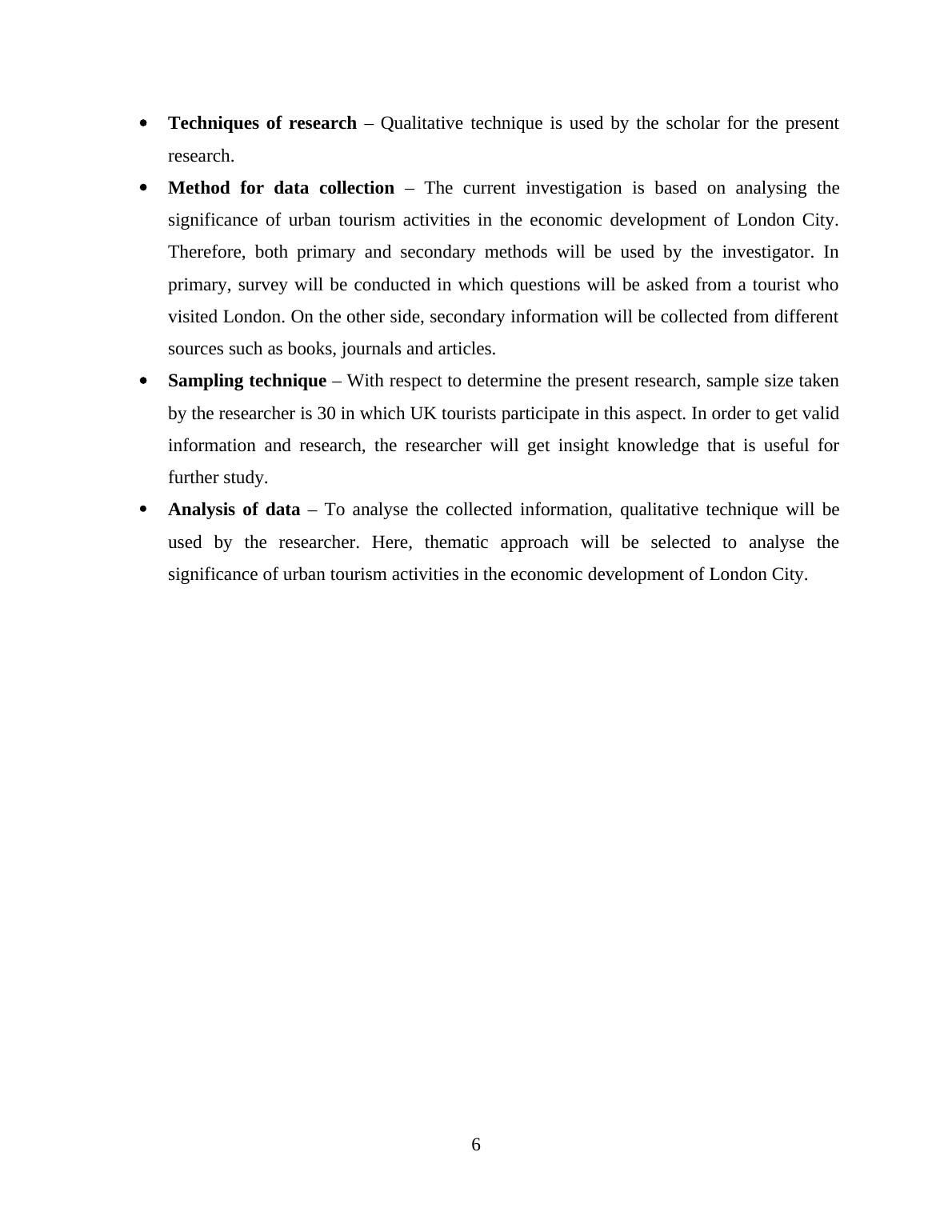 Aim: “To analyse significance of urban tourism activities in economic development of London