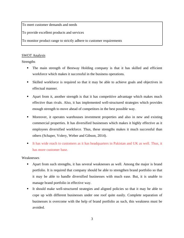 SWOT analysis is being conducted and also how it can be overcome by company is also