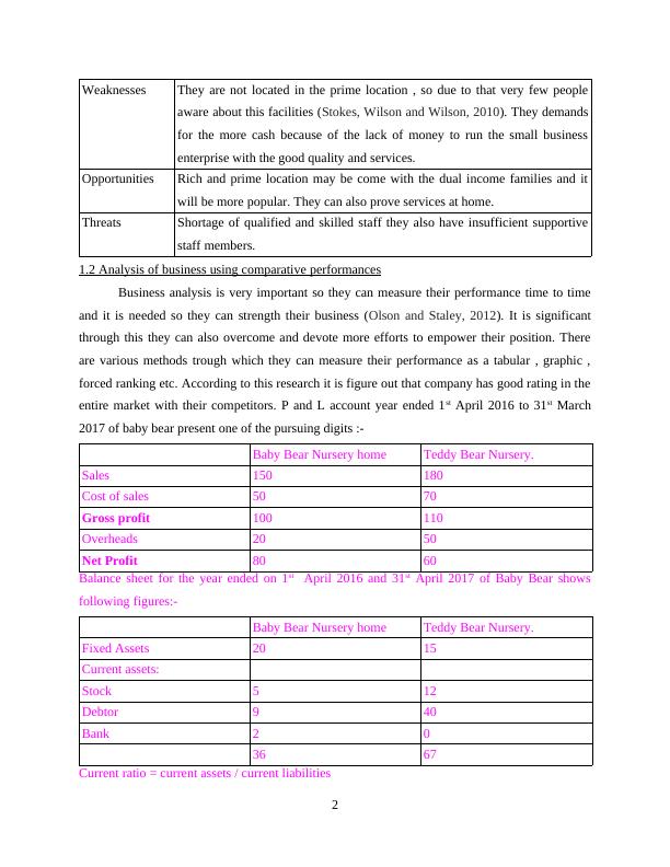 Threats Shortage of qualified and skilled staff they also have insufficient supportive