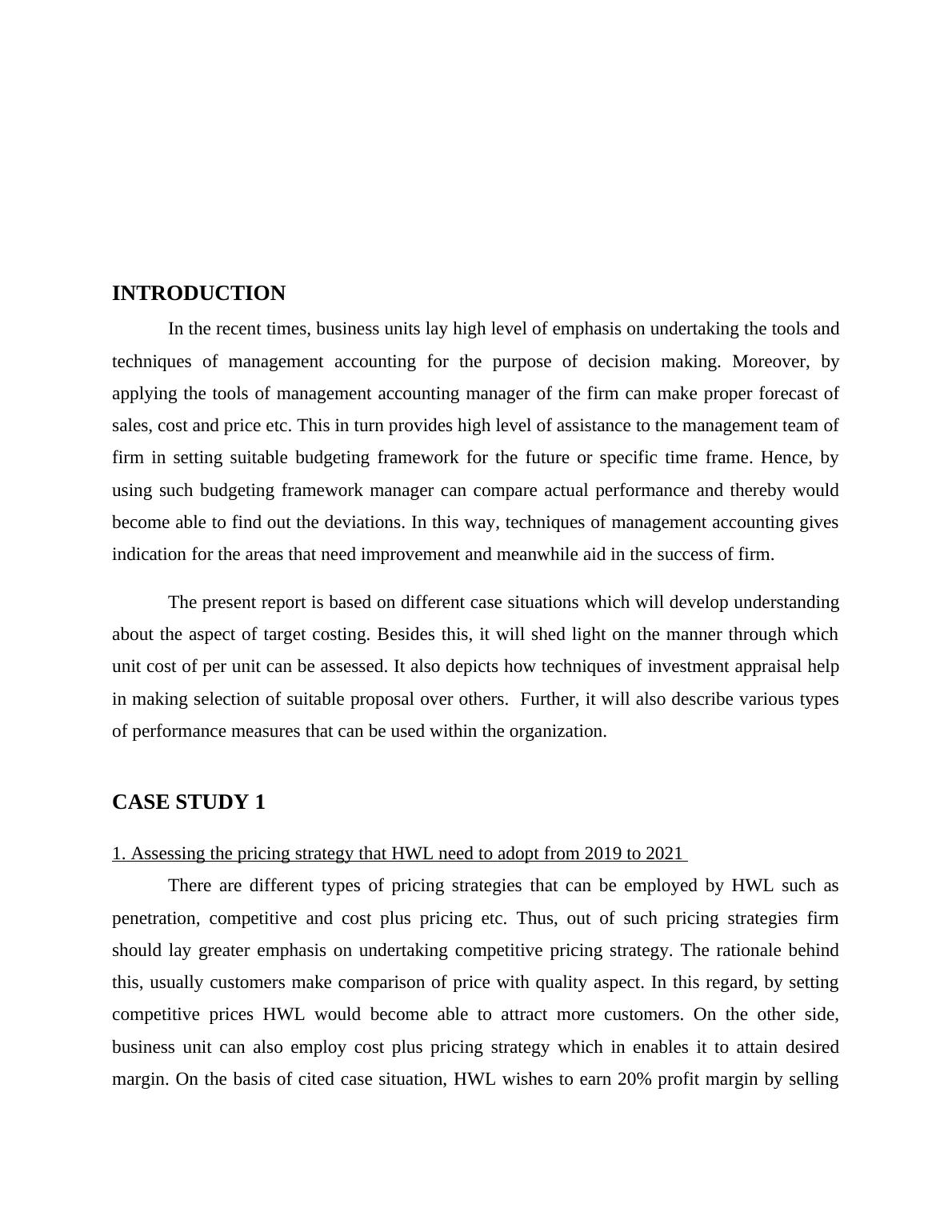 1. Assessing the pricing strategy that HWL need to adopt from 2019 to 2021