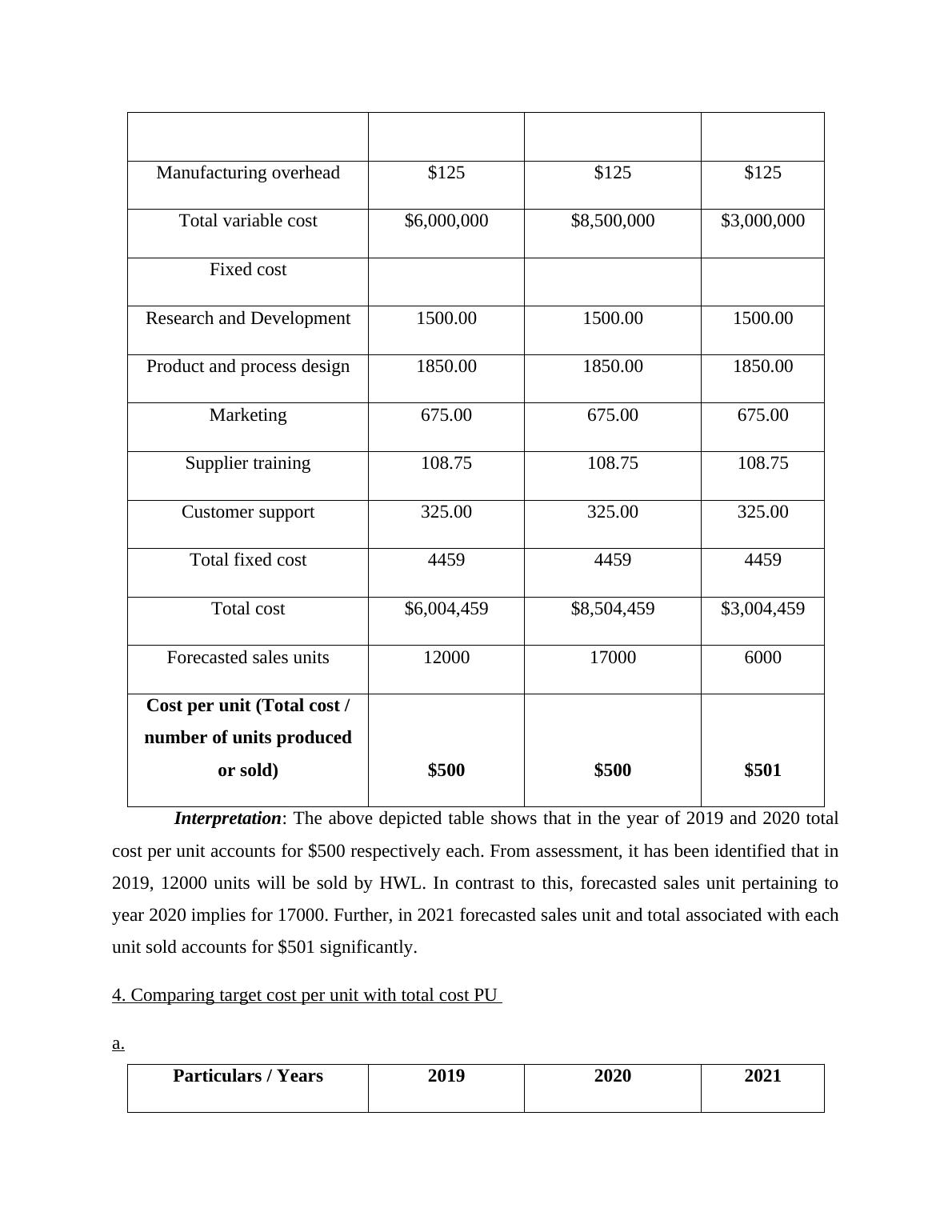 4. Comparing target cost per unit with total cost PU...................................................................3