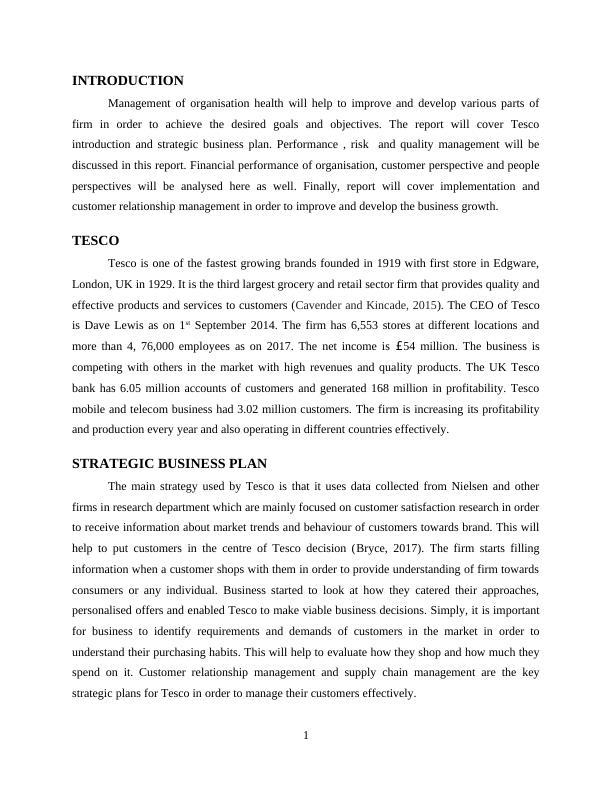 firm in order to achieve the desired goals and objectives. The report will cover Tesco
