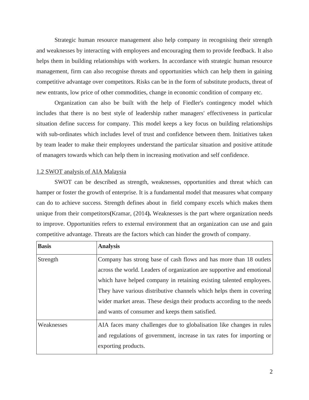 find its strength and weakness. SWOT analysis of company shows that AIA has successful