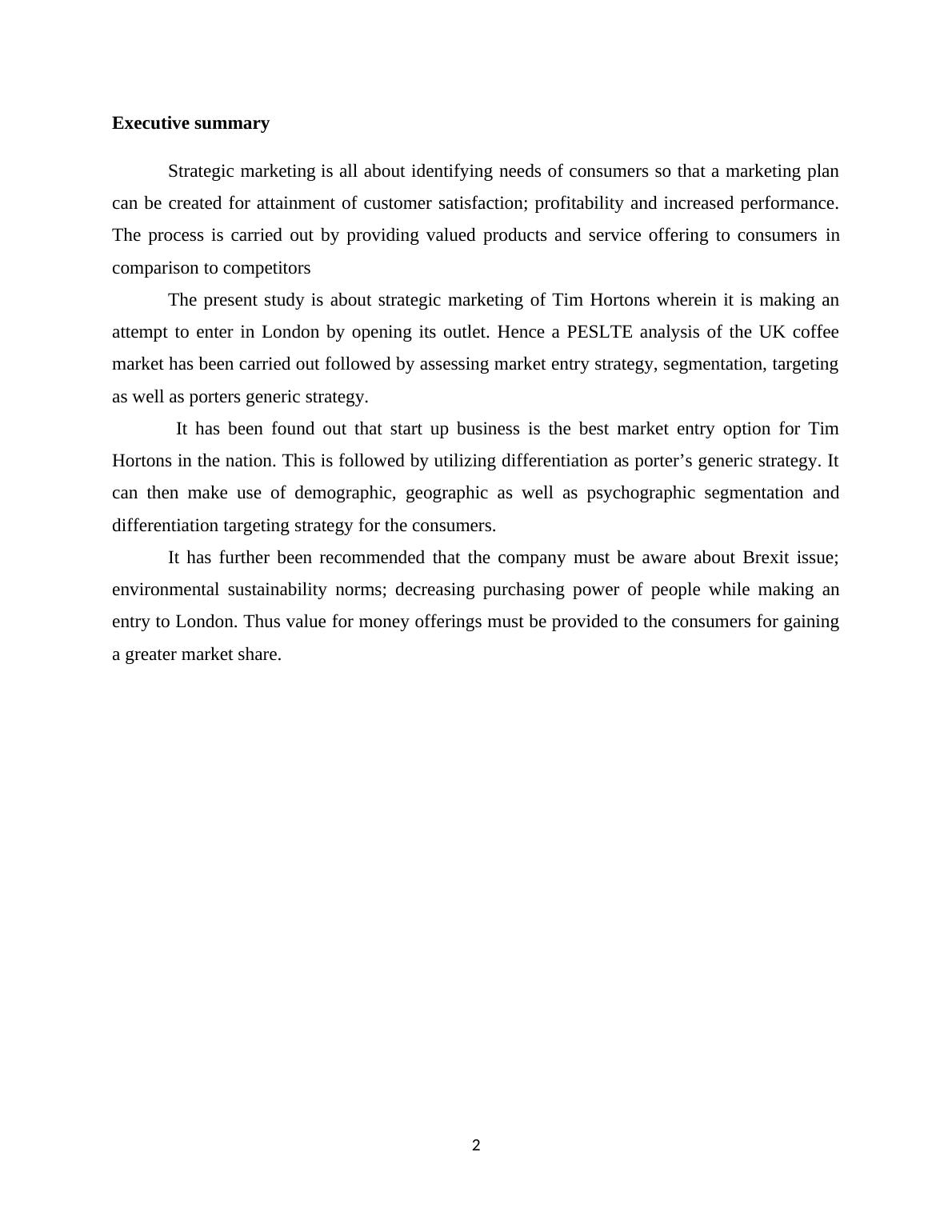 customers different from that of competitors. In order to enter into the UK market, Tim Hortons