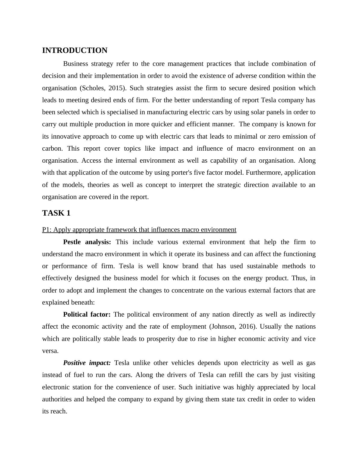 Business Strategy Report: An Analysis of Tesla's Strategic Environment