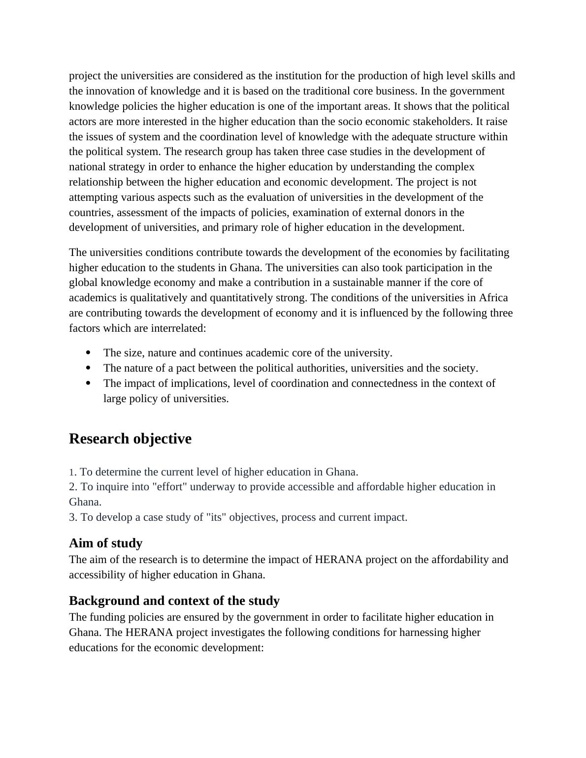 in order to facilitate higher education in Ghana. The policies are a hypothesis in which the