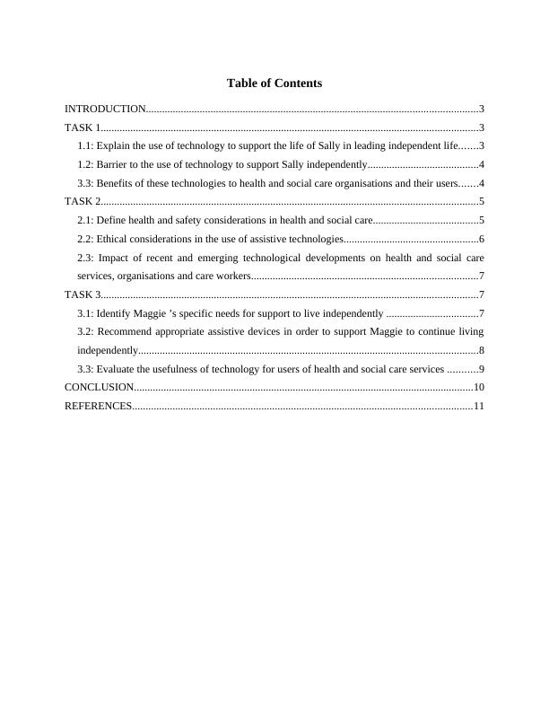 1.1: Explain the use of technology to support the life of Sally in leading independent life.......3
