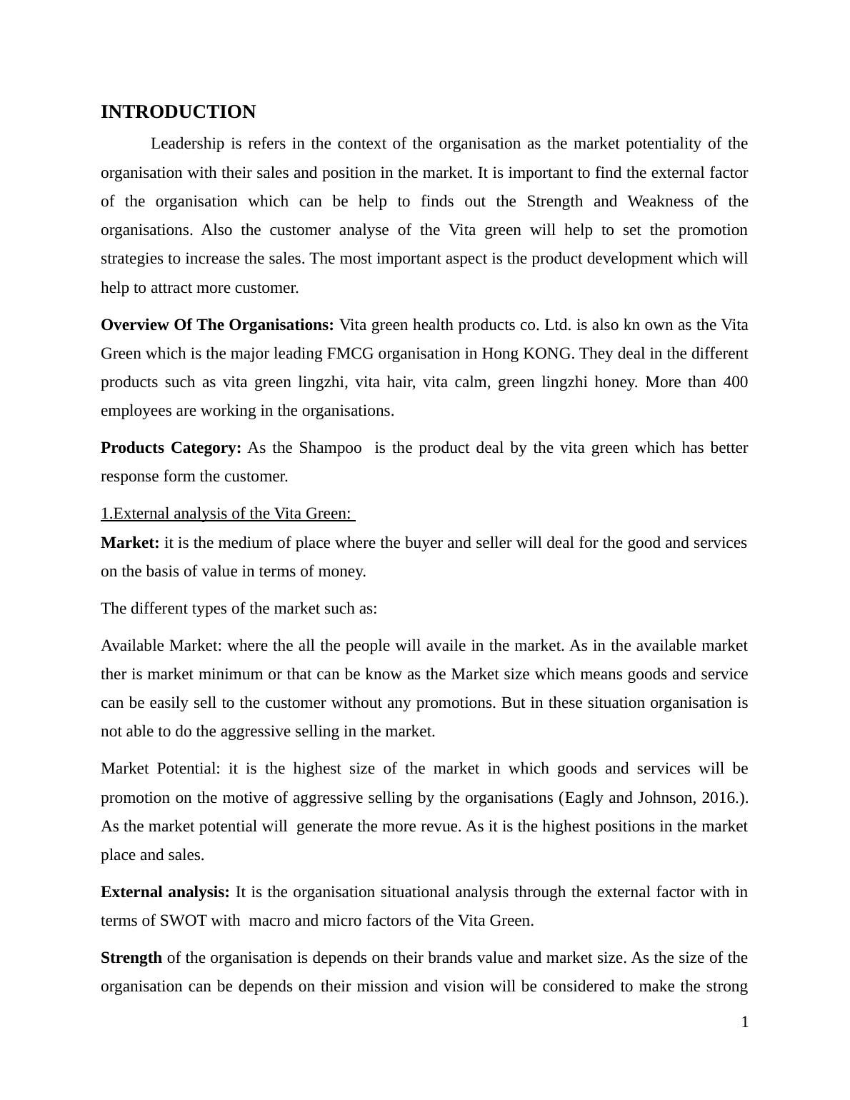 Overview Of The Organisations: Vita green health products co. Ltd. is also kn own as the Vita