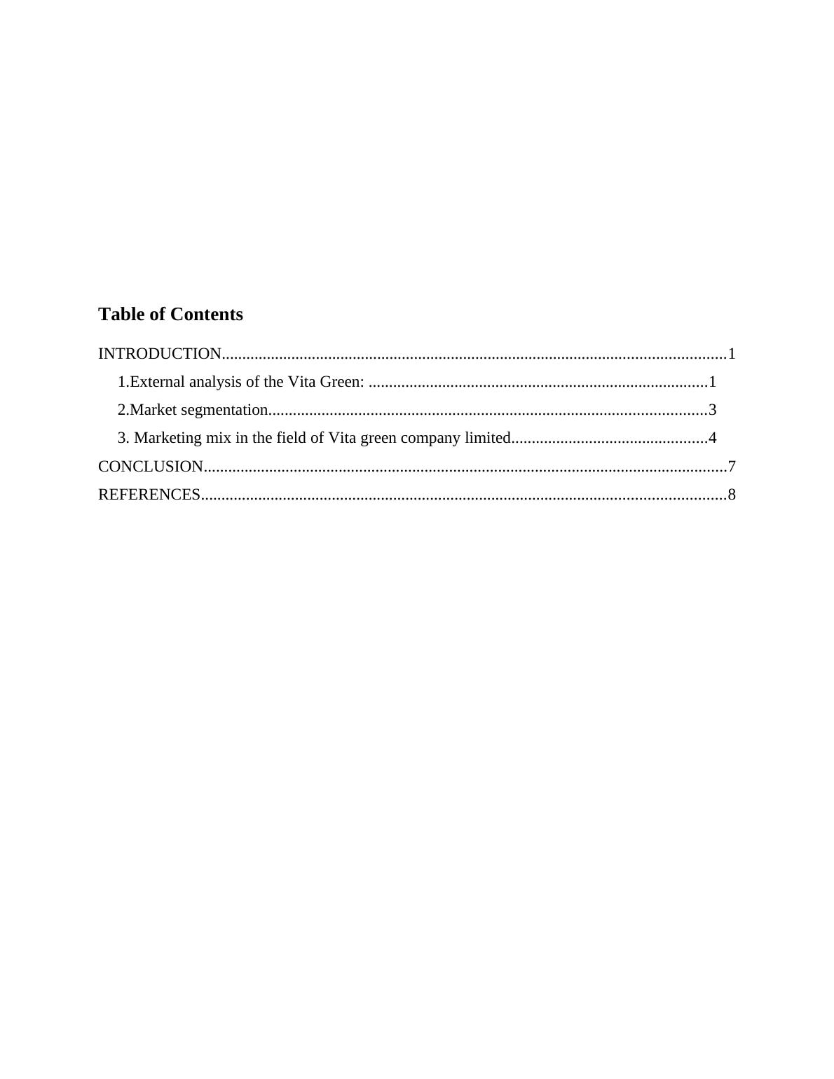 1.External analysis of the Vita Green: ...................................................................................1