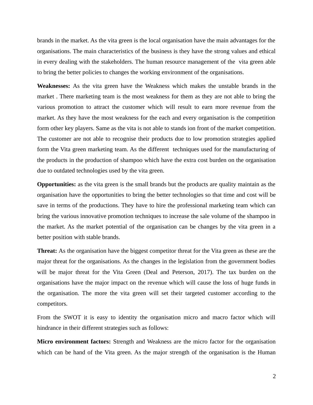 terms of SWOT with macro and micro factors of the Vita Green.