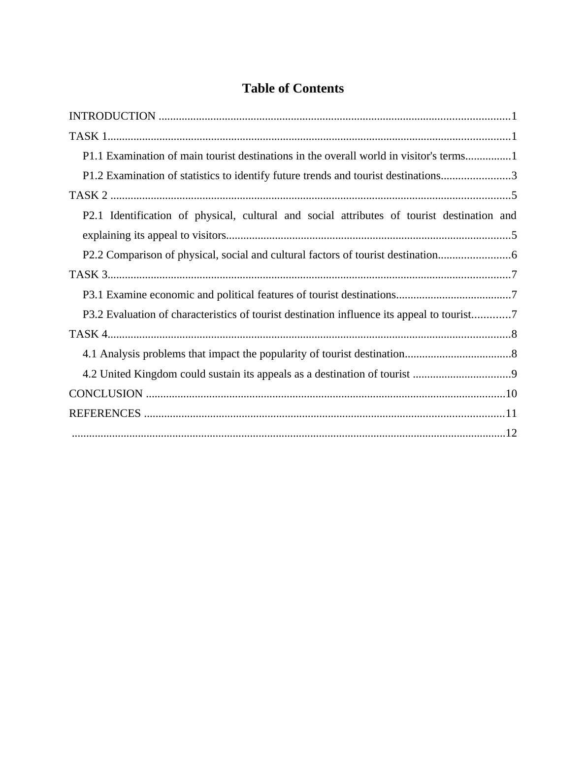 P1.1 Examination of main tourist destinations in the overall world in visitor's terms................1